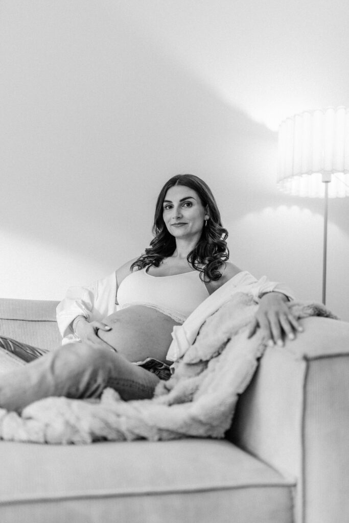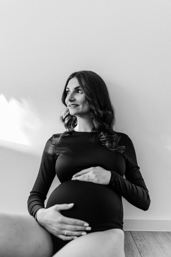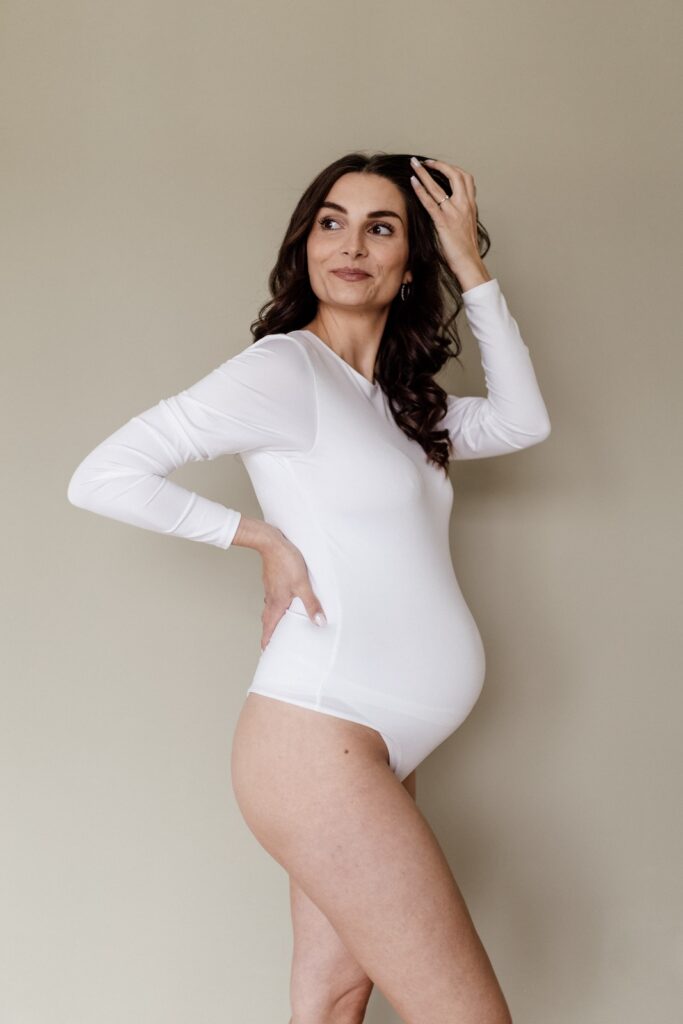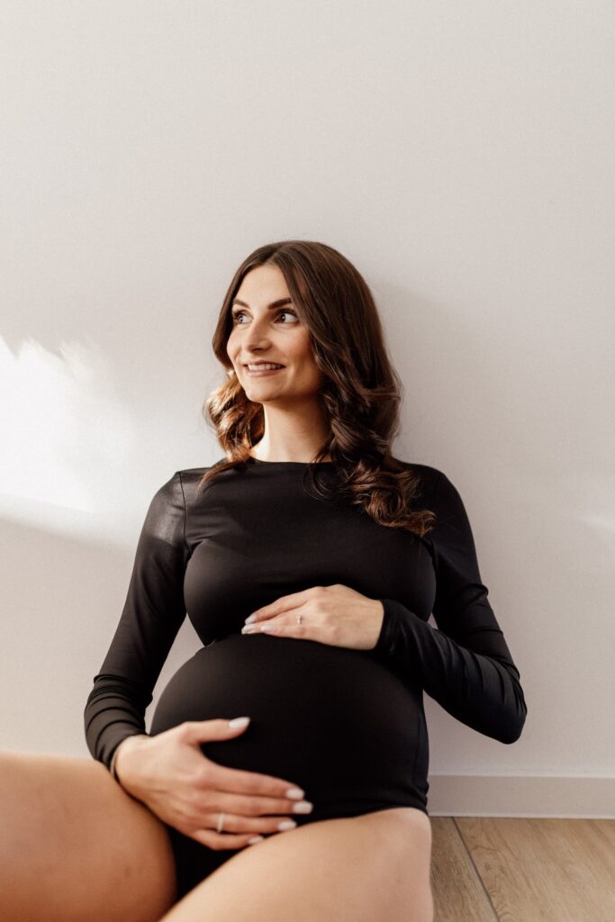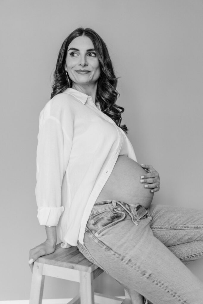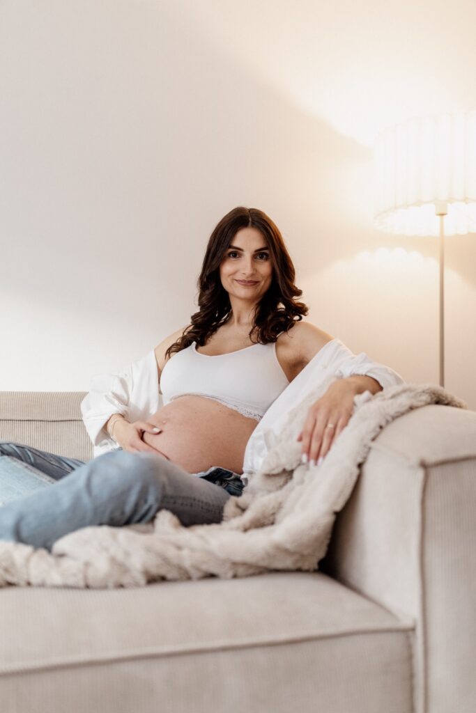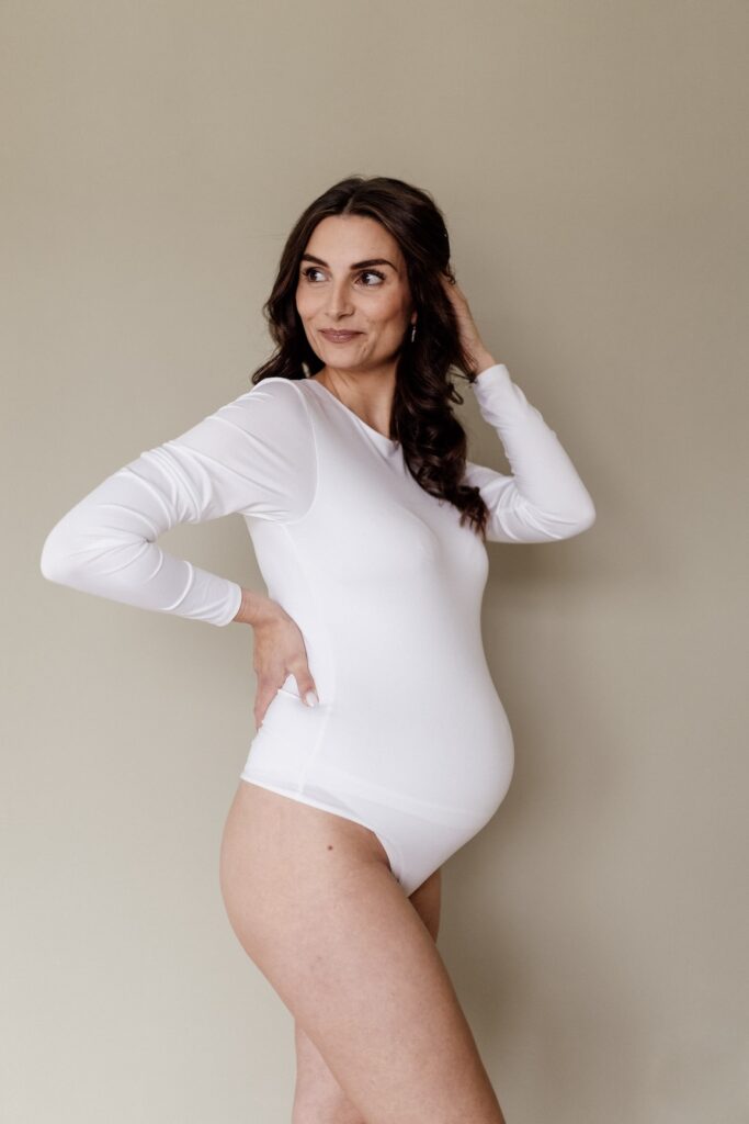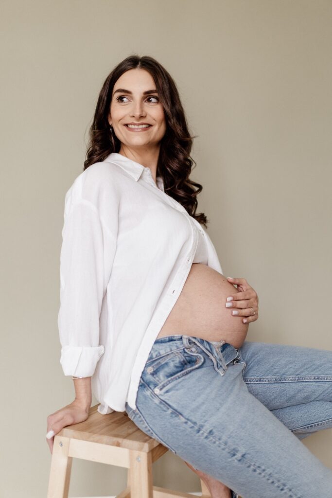 Ich liebe diesen Babybauch-Look, weil er so wunderbar direkt ist. Der Frontalblitz verleiht den Bildern eine Dynamik, die sofort ins Auge springt. Kein sanftes Streicheln von Licht, sondern klare, harte Kontraste, die die Formen und Linien betonen – perfekt, um den Babybauch selbstbewusst in Szene zu setzen.